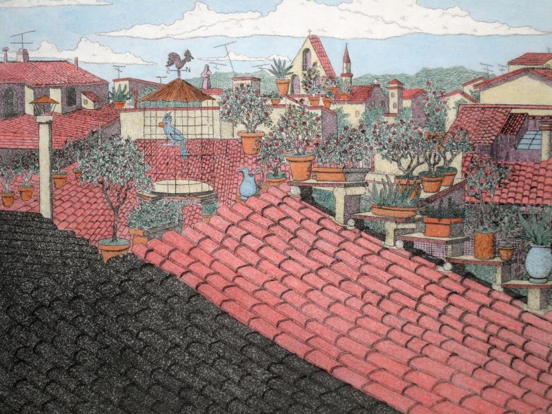 | Original etching. This was inspirited by the rooftops I saw in Florence, Italy. |