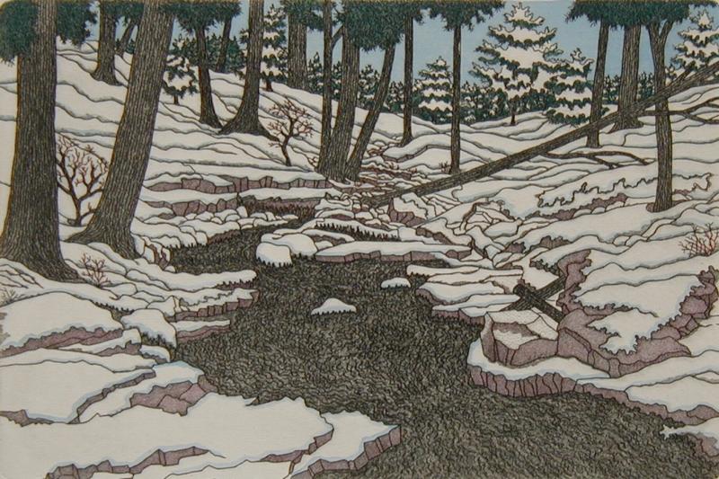 Raised in New England, the artist feels a special connection to the natural history that binds the people and places of this region together. The small towns and ports, as well as the great open spaces of New England feature strongly in this collection of etchings.