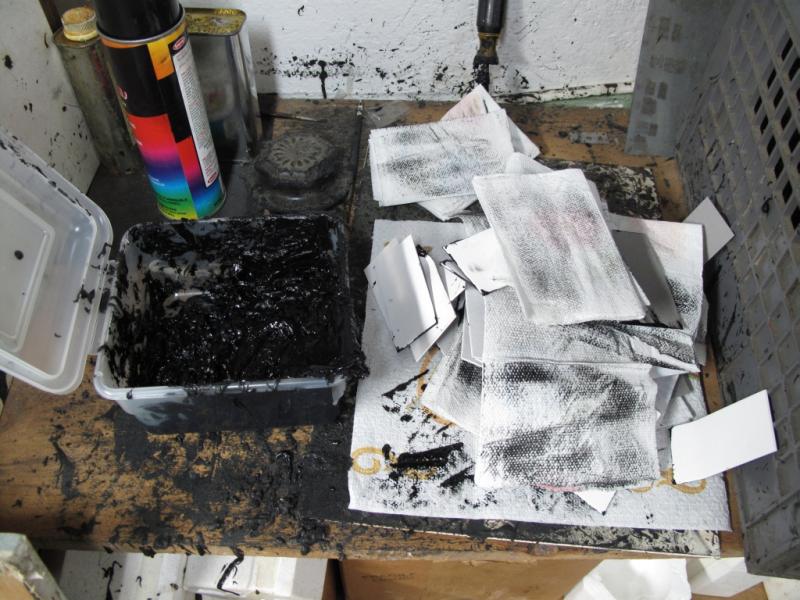 | This is the area where I apply the black #514 oil-ink on the plate. |