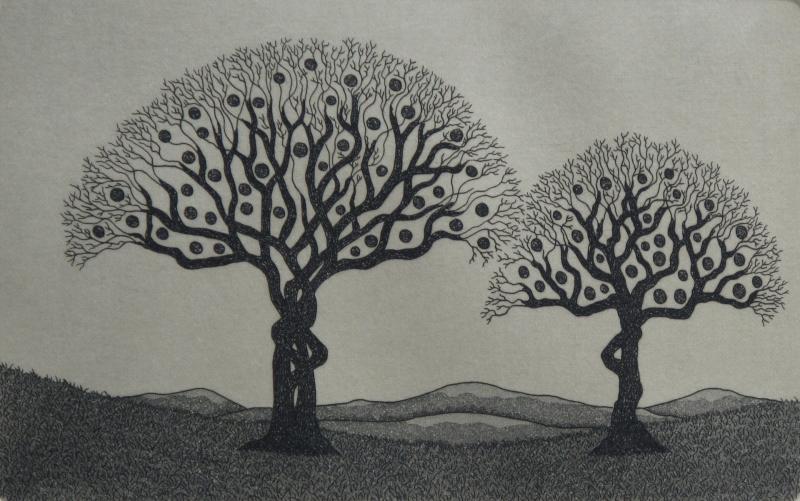 Monumental, stern, comforting. The trees that surround us exert a pull on our consciousness that goes far beyond the visual. Below are some of the great trees of America - the Oak, the Birch, the White Pine. Spreading through the atmosphere, they serve as exceptional subject matter for the printmaker.