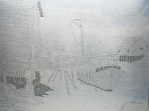 Each hand-pulled etching is individually taken from a zinc plate that is crafted by the artist. To begin this process, the artist starts with a pencil detail of the image. Using a white chalk pencil, he coats the back of the drawing and then places the paper on top of the zinc plate, which has been entirely covered with a black resist covering. Next, using a sharp steel stylus, the artist etches the line, exposing the shiny metal of the plate below.