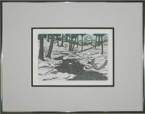 Next, the artist removes the felts, then slowly pulls the cotton-fiber paper off the plate without blurring or shaking the still-wet impression. After the etching is set to dry on a rack, it is hand water-colored to enhance the visual aspect. Each is then matted by the artist with museum board, for maximum conservation purposes.